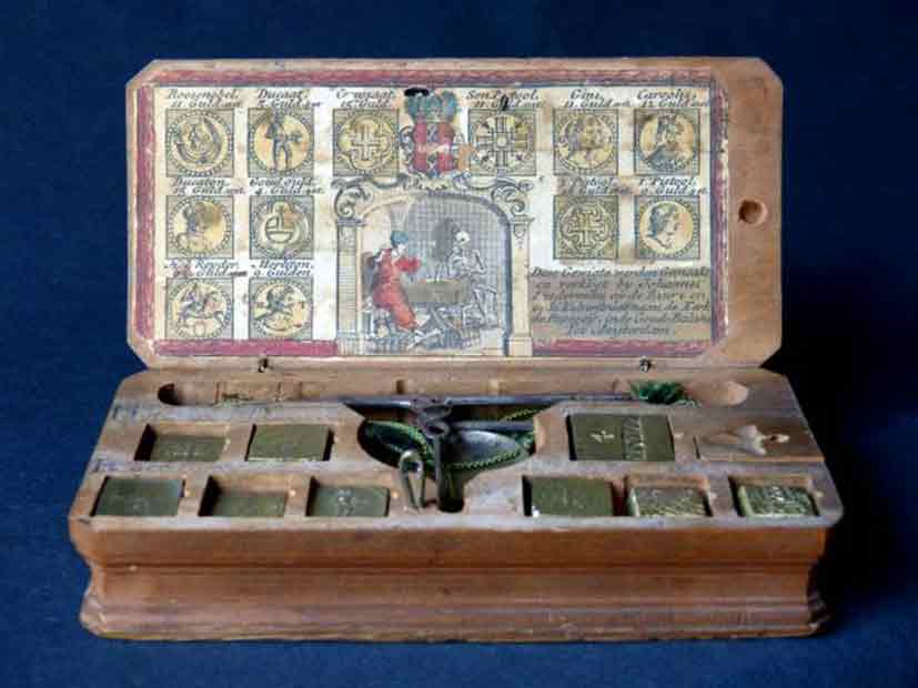 Trébuchet pour or et argent, balance de changeur de monnaies d'époque classique du XVIIIe siècle