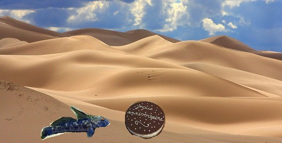 Bon anniversaire à toi ! avec un petit cliché d'un gobie bleu dans le désert de Gobi.