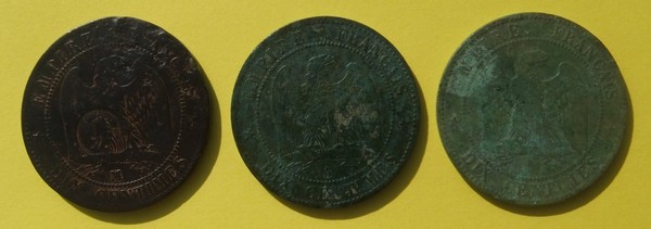 Pour le principal :la patine verte turquoise sur ta dupuis est splendide jamais vu...J'adore aussi la patine chocolat de ton demi as du milieu (si je ne me trompe pas je suis nul en romaine)Le noir métallisé sur ta louis XVI renvois super bien et la patine caramel de ta cochet donne envie de la croquer.