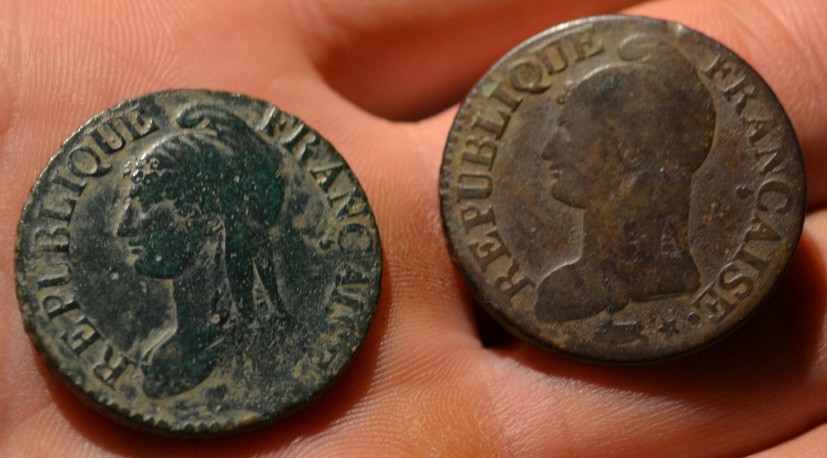 Voici deux Dupré de 5 centimes à la patine bien différente...