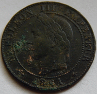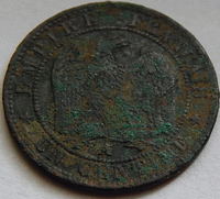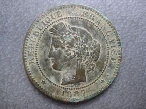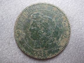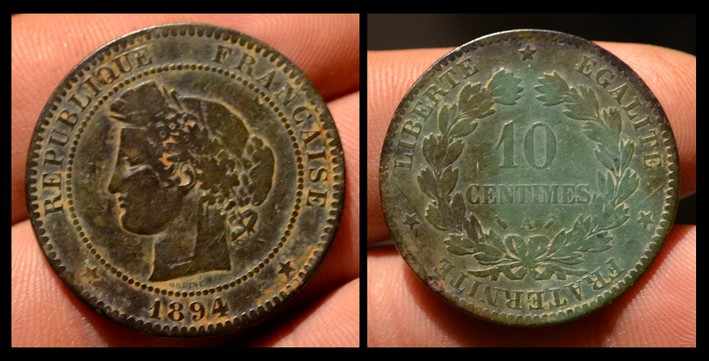 Et enfin voici une 10 centimes Cérès à la patine marron côté avers et marron sur les bords et vert au centre pour le revers...