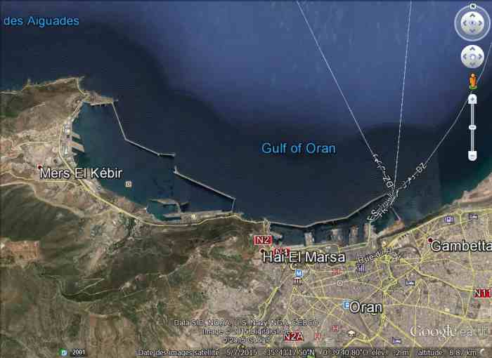 Je vais parfois sur gogglehearth je survole ma ville de naissance, Oran et le port est cachépar une tache grise pour ne pas qu'on le voit