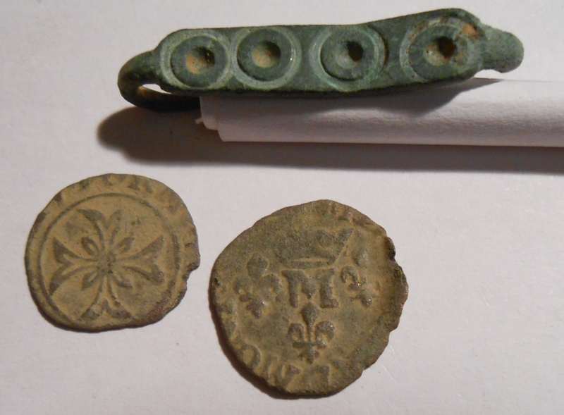 Merci pour la photo tinca! Les liards ont de beaux restes. Mais je te posais la question pour l'objet en haut à gauche de ces liards, l'espèce de pince...
