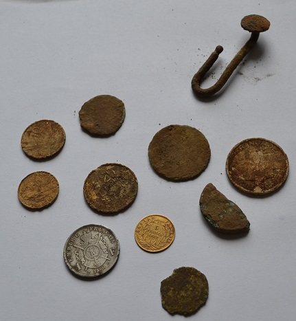 Très belle matinée détection en forêt parmi les feuilles d'automne emportées par le vent. J'ai enfin fait ma première monnaie en or et elle était bien accompagnée la coquine ...Cela fait 10 ans que je détecte mais 1 an de manière assidu parce que j'ai du temps, avant c'était plutôt occasionnel.