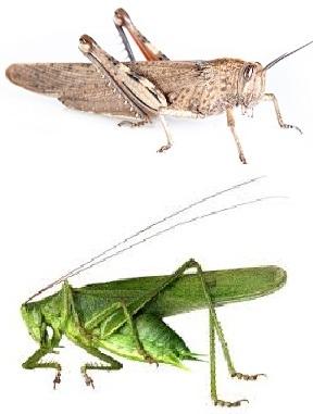 Le criquet a des antennes courtes, celles de la sauterelle sont longues