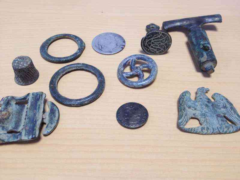 Depuis quelques temps j'ai trouvé pas mal de chose. Tous les objets typiques que l'on peut trouver. (Dés à coudre, pièces, balle de mousquet, plomd de sac..) et des objets un peu plus sympa (Matrice de seau, rouelle gauloise, fibule, medaille...etc ) J'ai presque toujours pu identifier pièce et objet grâce à mes recherches sur internet et grâce à un collègue de travail réellement passionné. mais j'aurais certainement besoin de vos lumières sur certains objets ;-)