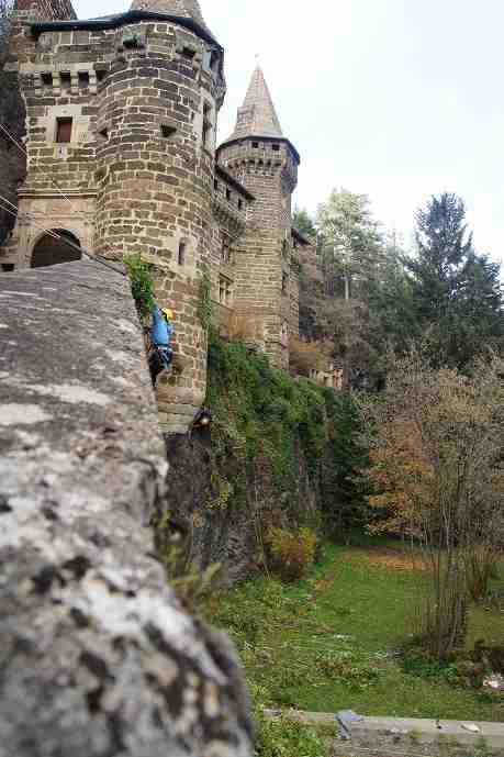 Pour précision, je suis cordiste et on a donc été engagé pour enlever le lierre sur tous les remparts du château ainsi que sur l'escalier d'accès.