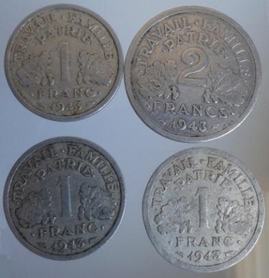 En effet, pour la 1 franc à la francisque type léger, Paris frappe 205 millions d'exemplaires en 43 contre 73 millions l'année suivante.