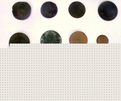 Un Napoléon, une dix francs, un DT, un anneau en bronze, une médaille religieuse, un bouton de cape ou de blouse, le reste des monnaies à déterminer après un bon nettoyage.