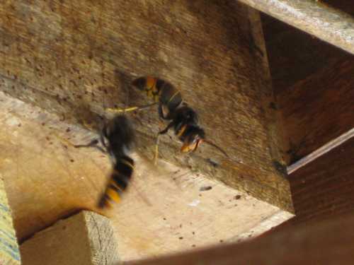 Même si avec l'aide d'un professionnelle en destruction de nids de frelons nous en avons détruit deux nous sommes loin de voir la fin de l'existence de ces bébettes.