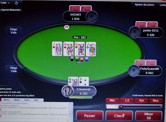 Salut creuzorak, petit nouveau du site, je kiffe aussi le poker (surtout l'hiver) et je joue souvent sur Pokerstars; C'est bien sur ce site que tu es aussi? ,J''y suis sous un autre pseudo mais ca fait partie de mes hobbies aussi .