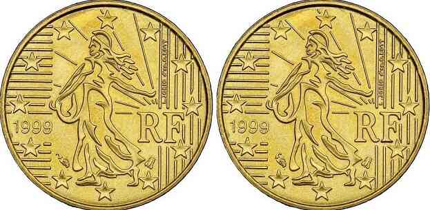 [81] Bonjour à tous, je passe par hasard, l'extrémité de la première mèche de cheveux en haut à droite est différente, plus 'carrée et longue' sur la monnaie de gauche.