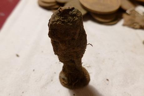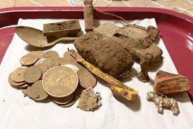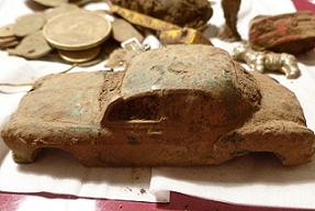 [1853] , a tous, sortie de cet après midi, des monnaies, une médaille d' étretat,deux voitures, le reste d' un soldat, une pompe a essence, une petite remorque de camion, une cuillère, voila et bonne année a tous.