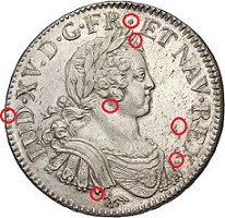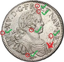 - Un élément du grènetis à gauche du D de LUD est plus court