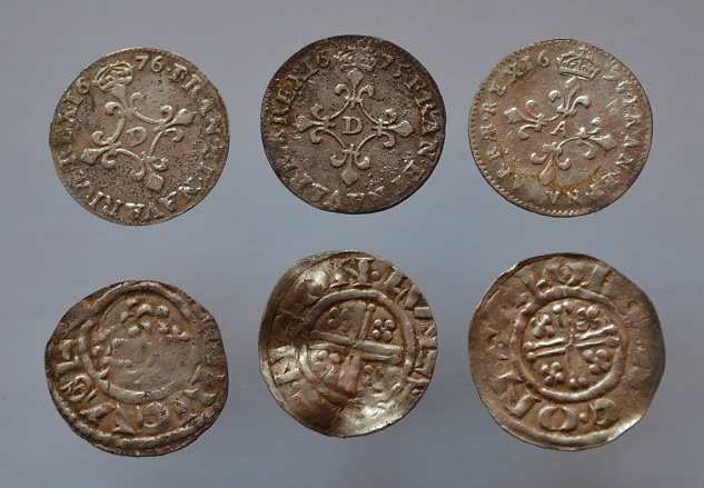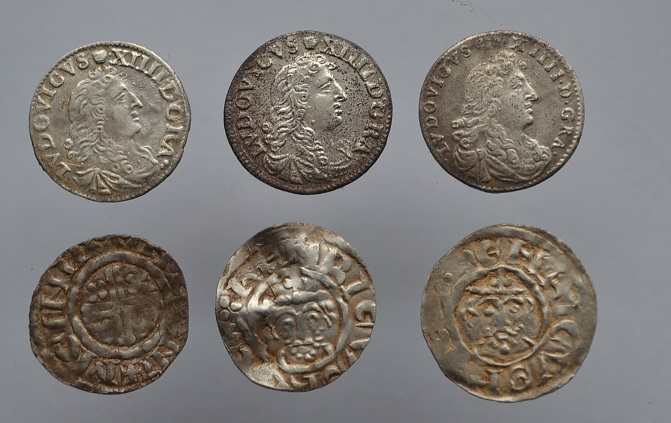 La sortie, 2 boursées, Louis XIV et billons à id, un petit bronze, un dé