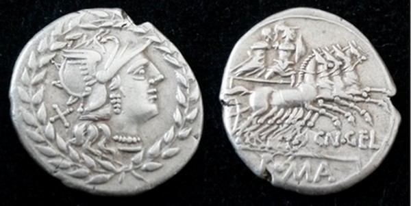 denier de la Republique Romaine de CN.GELLIUS , vers - 138 avt JC .