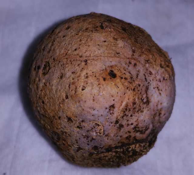 J'ai trouvé également ce (je pense) boulet de 6 cm de diamètre en granit à 25 cm de profondeur. Sachant que la région possède plus de terrain de silex que granitique, je ne pense pas à une forme naturelle. Qu'en pensez-vous ?