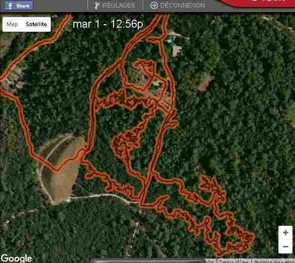 [1877] Voici mon parcours de 4h environ dans une forets la ou sans suivre de chemin précis je me perd a tout les coups, j'y suis aller avec mon GPS pour tester la bête et bien qu'il ne m'indique pas de carte pour me retrouver cela est très utile pour moi de pouvoir me situé une fois rentrer a la maison !