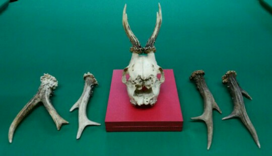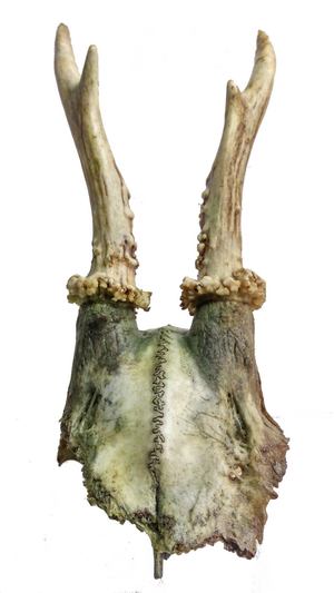 là ce n'est pas une mue mais bien le reste d'un crâne de chevreuil, trouvaille sympa.