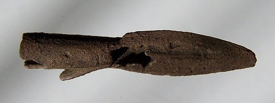 Une pointe en bronze de 35mm. de long avec la pointe un peu écrasée d'origine trouvée dans le 13
