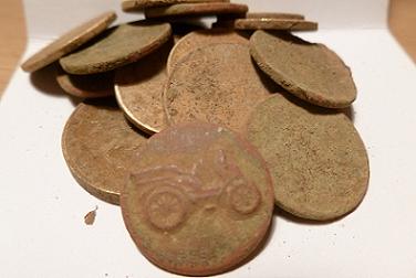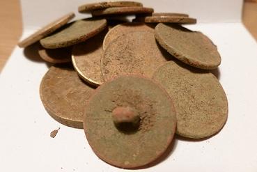 [1853] , a tous, sortie du dimanche, quelques monnaies, une cuillère, quelques morceaux de voitures,et un bouton, pour le partage, bonne soirée a tous.