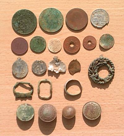 10 pfennigs 1900 + 2 pfennigs 1874 +1 pfennig en zinc + 10 centimes 1919 + 5 centimes 1933 +un billion rincé