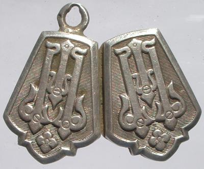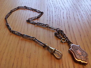 Un exemple de chaine de montre à gousset et sa pendeloque porte-médaillon.