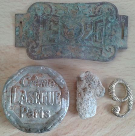 [240] oui c'est bien cela , a mon avis tu es tombé sur un petit campement car le reste est lié , la plaque fiscale de velo 1915 ( il y avait des compagnies cyclistes ) , le couvercle de pot de creme etc...