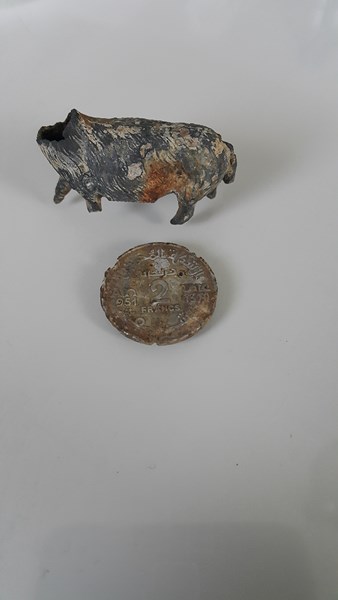 J'ai trouvé aussi une espèce de jouet en plomb je pense, matérialisant une vache.