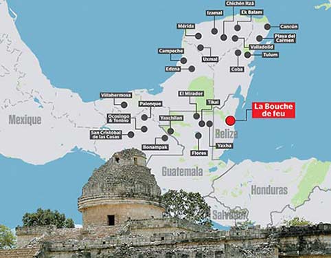 Il a nommé cette cité perdue K’ÀAK’ CHI’ soit «Bouche de feu» en français.