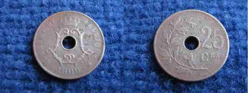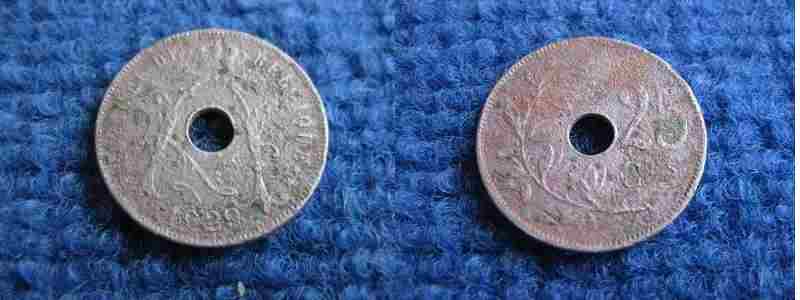 Sympa ta pièce Belge percée. Apparemment nos amis Belges aiment la Provence depuis des lustres et y perdaient pas mal leur monnaie tellement ils étaient éblouis par nos magnifiques paysages et notre soleil. Voici ma jolie Belge trouvée dans un champs près de chez moi.