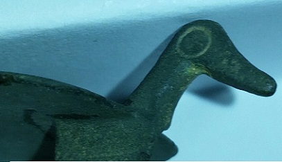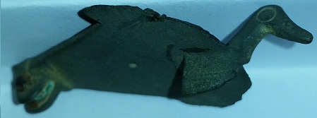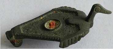 Fibule zoomorphe représentant un canard gallo romaine 2éme siècle ap J-C. cuivre et émail.
