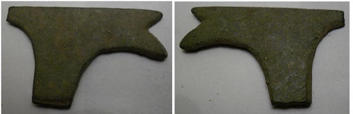 L'objet en question: en bronze assez plat, 3 cm / 2 cm.