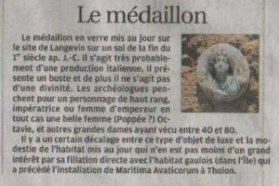 ...Explications de l'archéologue au sujet du médaillon ' article sur le journal La Provence