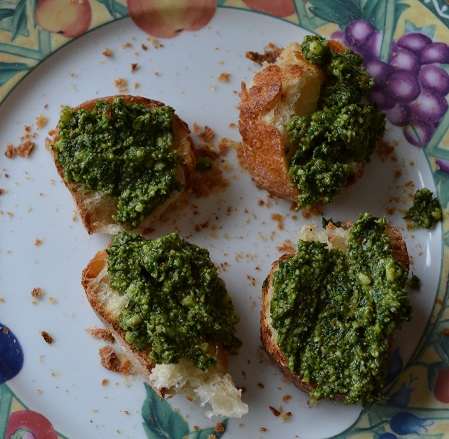 Bon à l'heure de l'apéro, petits toast au pesto d'ail des ours.
