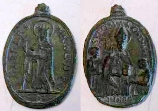 -pour la médaille 1 côté saint Thomas dessous c'est marqué ROMA et de l'autre côté *SELISAB* pour le s je sais pas si il est collé j'ai du mal à voir et *REG.D.PO*