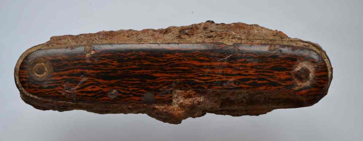 J'ai connu des canifs avec des manches en bakélite avec les mêmes motifs imitant parfaitement le bois. Mon Grand père en avait un imitation bois et un en corne, à 2 lames et tire bouchon, hélas perdus au cours de déménagements