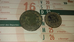 Les monnaies et les objets publiés sur ce forum sont censés faire partie de collections particulières, avoir été découverts fortuitement, ou bien être le fruit des recherches de prospecteurs “autorisés”, et avoir été déclarés selon la loi, le webmaster n’ayant pas la faculté de vérifier la provenance et le devenir de chaque objet. Ensemble, respectons la loi 89.900 et respectons le patrimoine archéologique.