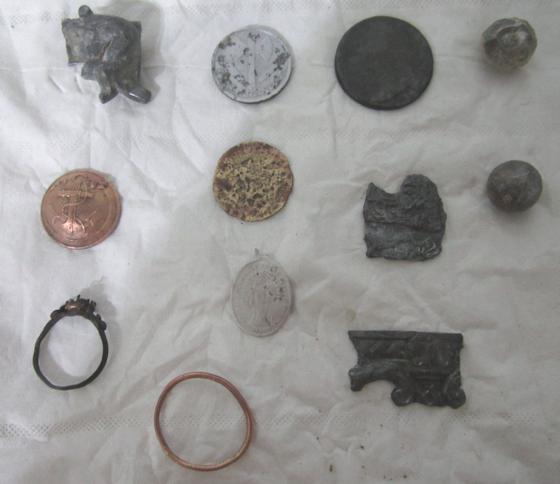 - une petite médaille qui me semble en alu (O Marie conçu sans péché priez pour nous) datée 1830 . Lou je te la mettrai coté ID avant de la passer dans la BDD.