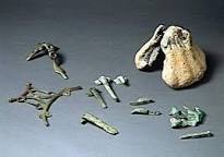 pour répondre a lou et fibulon , concernant la photo en R21 , il s agit d un ''démoulage'' de plusieurs fibules , donc brutes de fonderie ! le moule etait en terre , en forme de ''poire'' , et une fois cassé , ils obtenaient cette grappe de fibules en bronze a terminer , voila ,j espère que mes commentaires vous auront éclairé,,