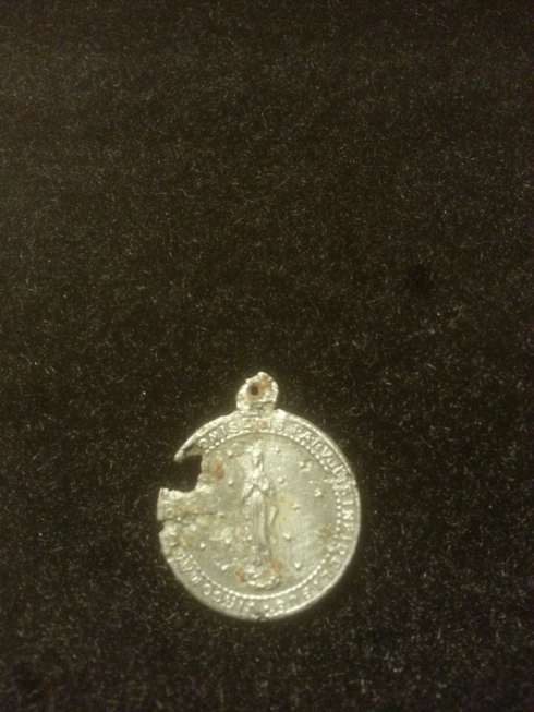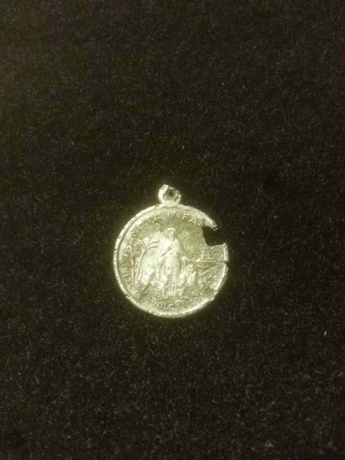 Dans son pays ( l'Espagne ) dans les années 50, était vendu pour une péséta ce genre de médaille afin de venir en aide pour évangéliser les enfants d'Afrique ( d'où les palmiers) et, avec cette médaille, la publicité disait qu'elle ( la médaille) sauvait ou sauverait une ame