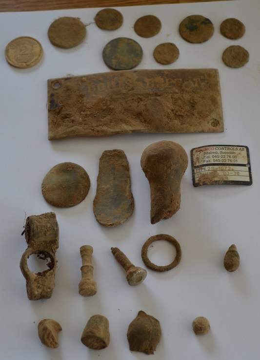 Une 2 francs Morlon 1931, une Louis XVI au faisceau, une deux ou un centimes , un dé à coudre, une capsulae