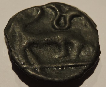 piecette sortie du bain ce soir et nettoyée ,,,, quelle surprise quant a son état et son type !!!! il s agit d après mes recherches, d un potin dit '' au mannequin et au taureau'', monnaie bien de chez moi que je ne connaissais pas , comme quoi ,,,,