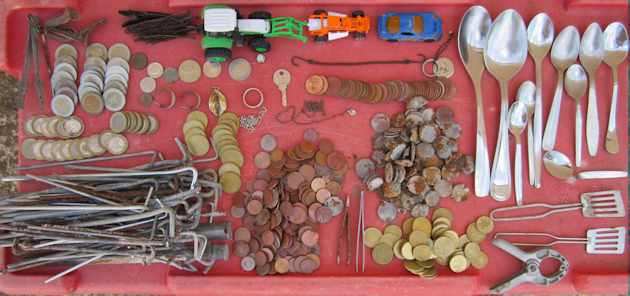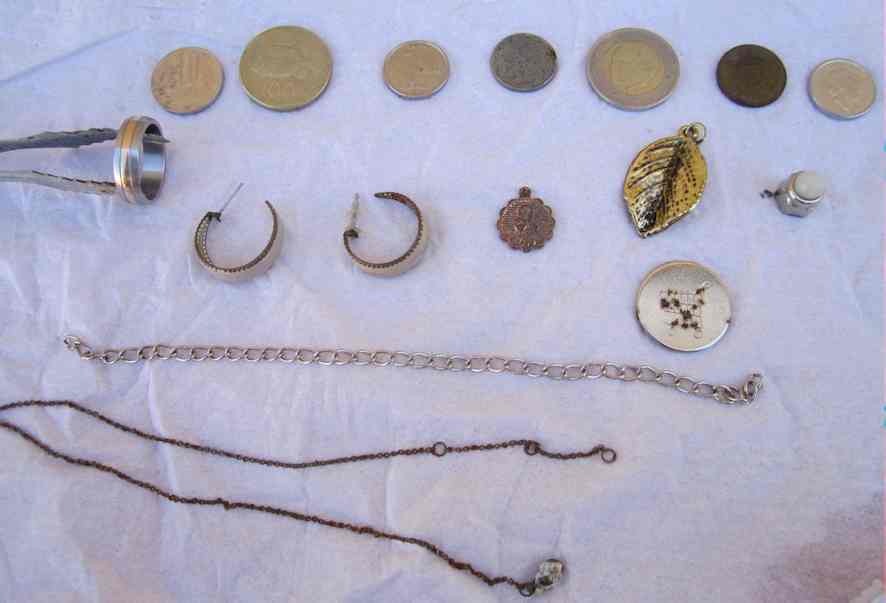 Dans les déchets il y avait un amalgame de coquillages 5 cm de diamètre qui sonnait au détecteur. Avant de le jeter je mets un aimant, il ne colle pas.