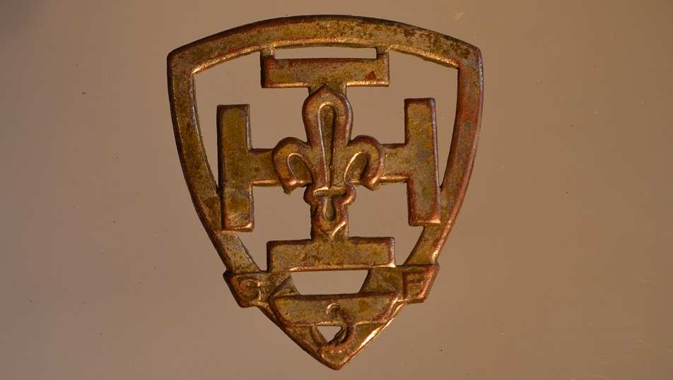 Au bas de la croix, à 8 heure il y a la lettre S et à 4 heure la lettre F pour Scout de France.