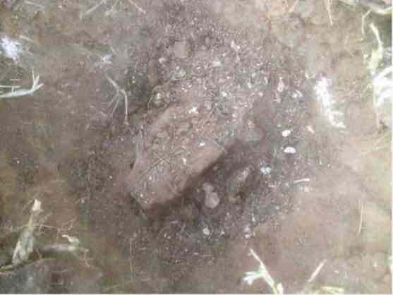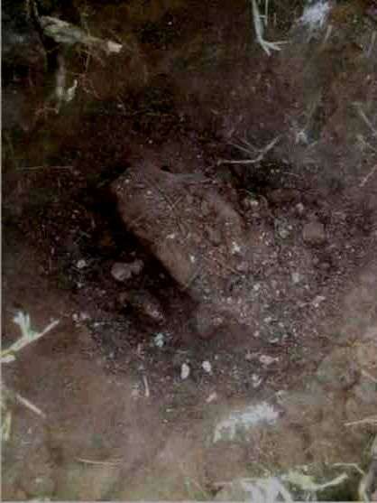Je dirais...une arme à feu, un revolver, planqué là depuis quelques dizaines d'années,un siècle au plus, au vu de la ficelle et de la toile d'emballage.