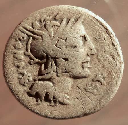 Denier de la république romaine pour Marcus Sergius Silus, Rome, 116-115 avant J-C