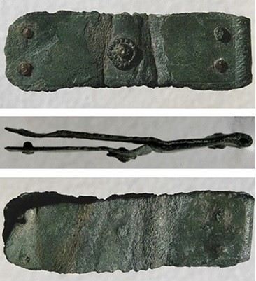 Trouvée il y a un mois, cette petite (42 x 13,5mm) plaque boucle médiévale (XIVè siècle, je pense) méritait sa publication sur le forum...