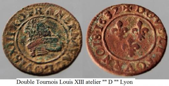 Voici un Double tournois de Louis XIII tête enfantin lauré, drapé et cuirassé à droite avec le grand col plat relevé .