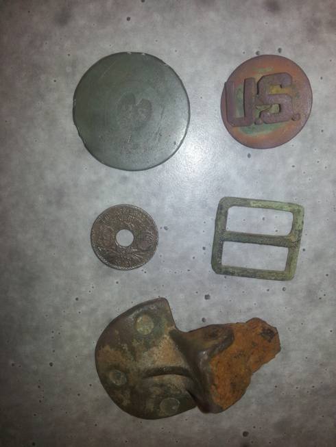 Petite sortie 30 minutes chrono et une 2 sols à la balance lessivée, un insigne us, une lindauer 1921, une boucle, et un clapet ou autre?